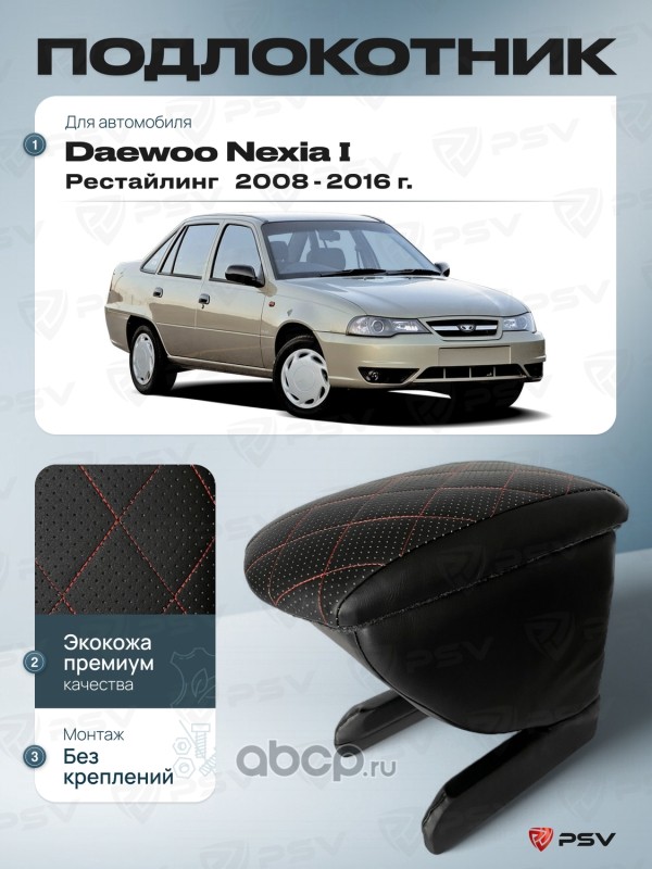 Подлокотник PSV для Daewoo Nexia I 2008-2016 г. - Рестайлинг, отстрочка красная