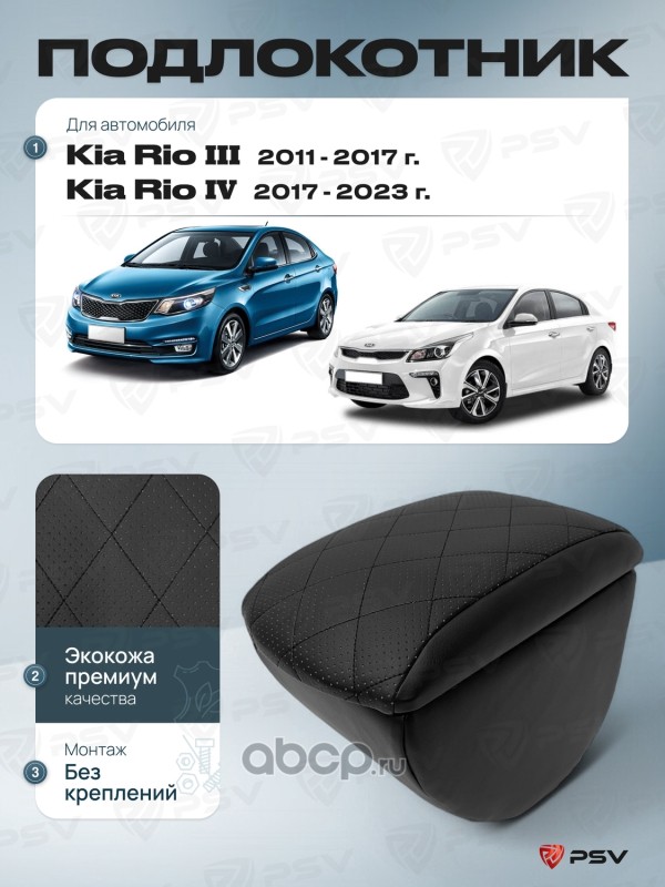 Подлокотник PSV для Kia Rio III 2011-2017 г. / Kia Rio IV 2017-2023 г. - с креплением, отстрочка черная