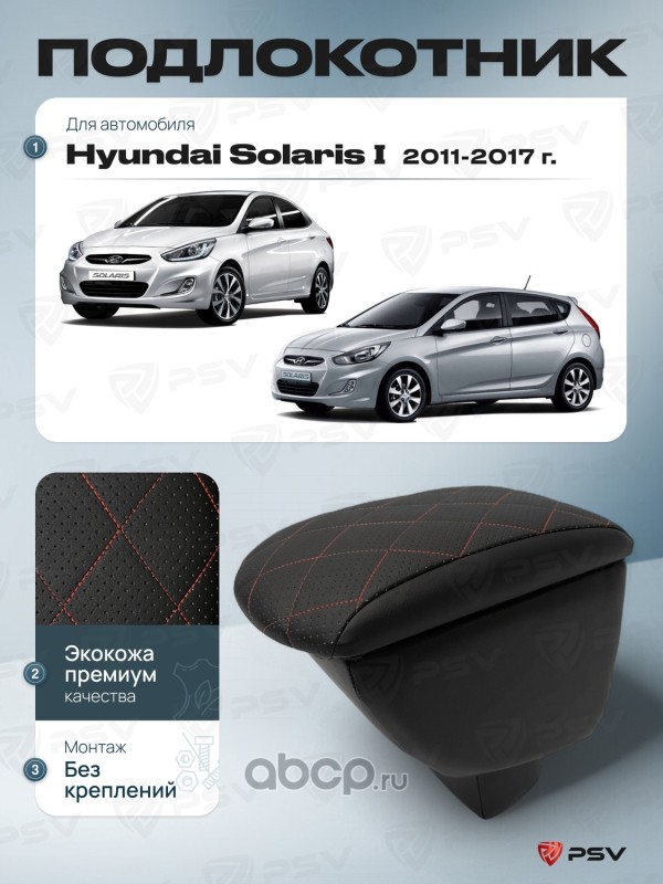 Подлокотник PSV для Hyundai Solaris I 2010-2017 г. - отстрочка красная