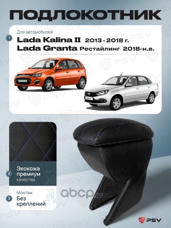 Подлокотник PSV для Lada Kalina II 2013-2018 г. / Lada Granta 2018-> Рестайлинг, отстрочка синяя