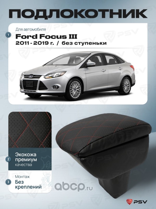 Подлокотник PSV для Ford Focus III 2011-2019 г. - без ступеньки, отстрочка красная