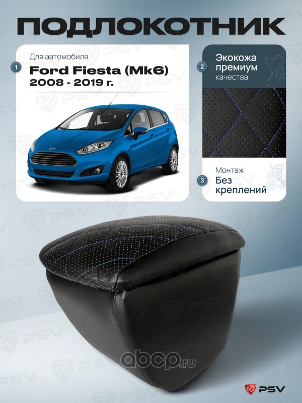 Подлокотник PSV для Ford Fiesta (Mk6) 2008-2019 г. - отстрочка синяя