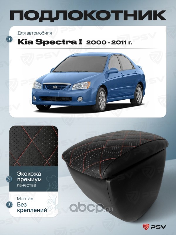 Подлокотник PSV для Kia Spectra I 2000-2011 г. - отстрочка красная