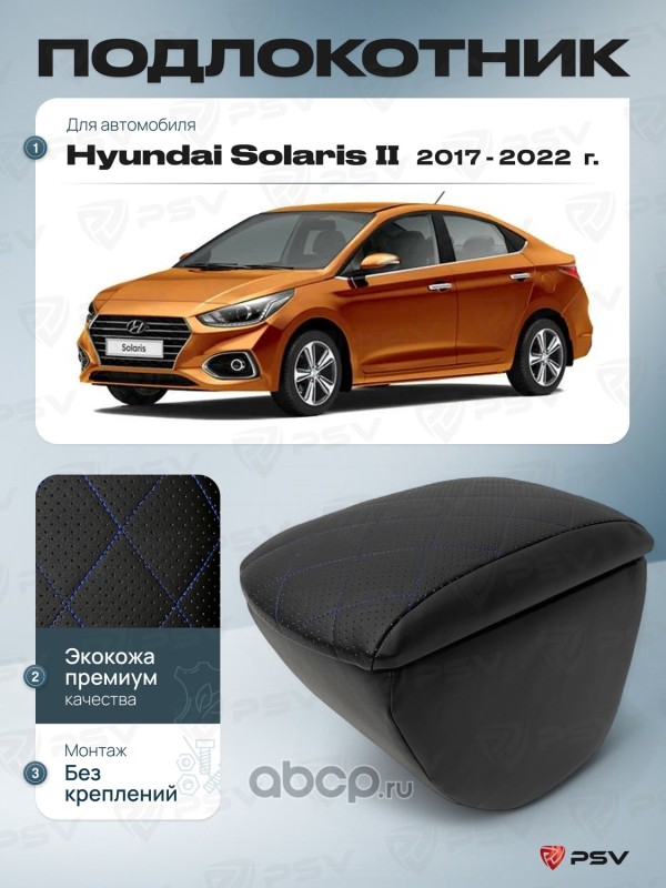 Подлокотник PSV для Hyundai Solaris II 2017-2022 г. - с креплением, отстрочка синяя