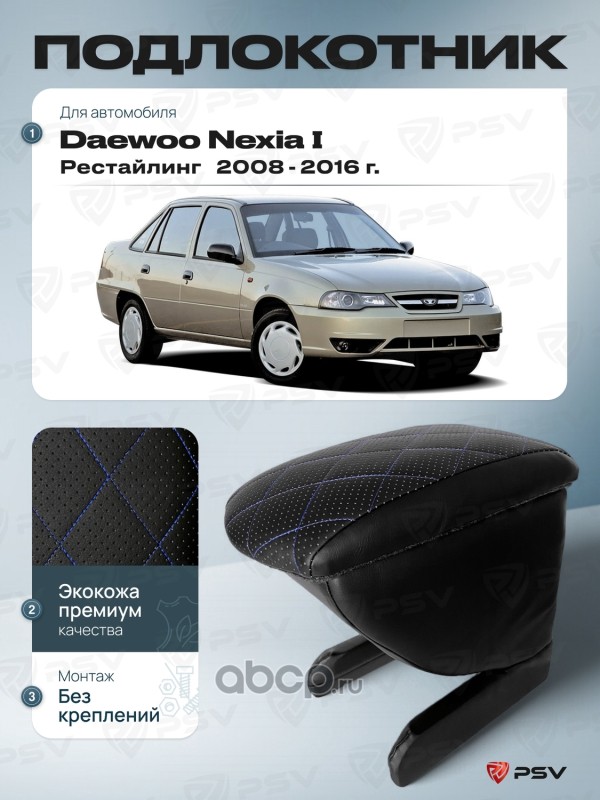 Подлокотник PSV для Daewoo Nexia I 2008-2016 г. - Рестайлинг, отстрочка синяя