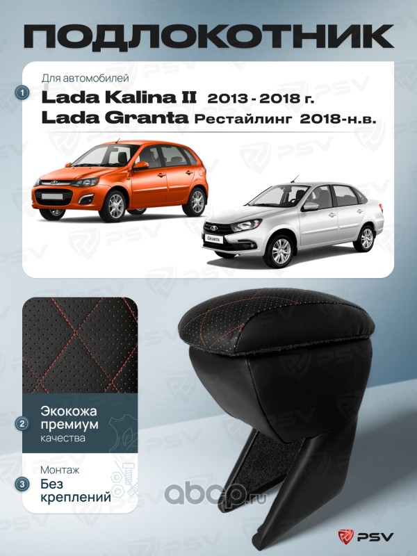 Подлокотник PSV для Lada Kalina II 2013-2018 г. / Lada Granta 2018-> Рестайлинг, отстрочка черная