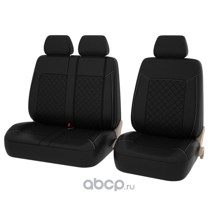 Чехлы в машину на сиденья для коммерческого транспорта PSV Elegant Next TRANSIT (Черный/отстрочка белая),экокожа