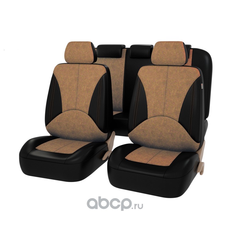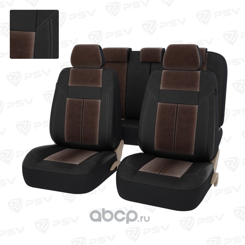 Чехлы в машину на сиденья универсальные весь салон PSV Absolute Next (Черный-Коричневый), экокожа + велюр