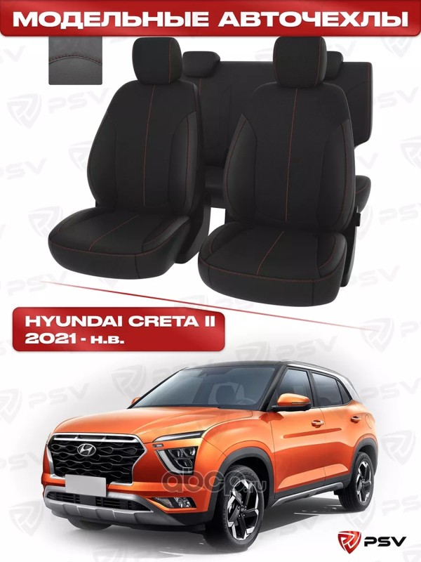 Чехлы в машину PSV для Hyundai Creta II 2021-> черный/отстрочка красная, экокожа "Оригинал