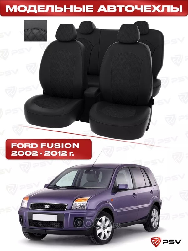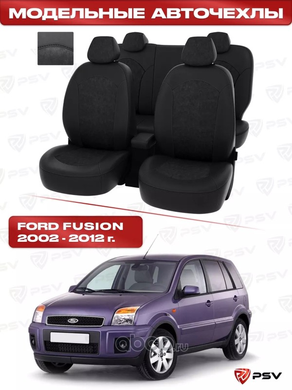 Чехлы Ford Fusion 2002-2012 г. - черная экокожа + черная алькантара *Оригинал*