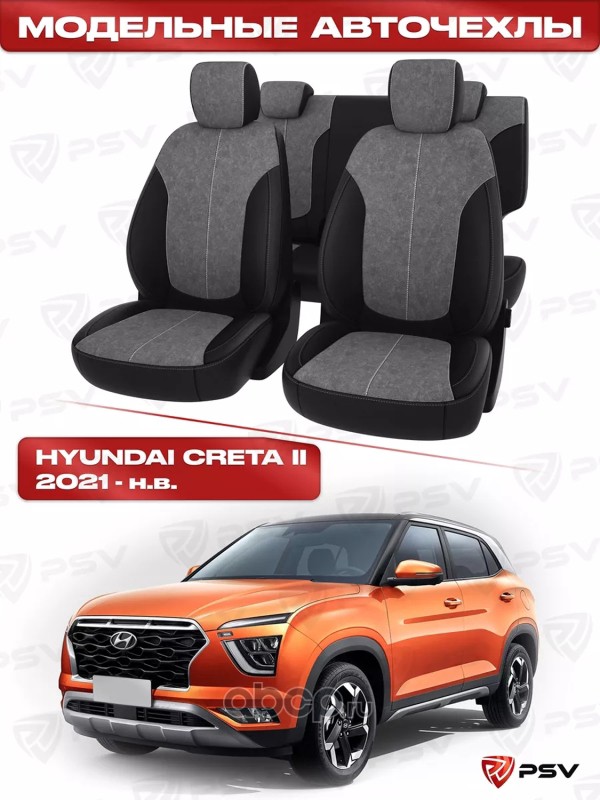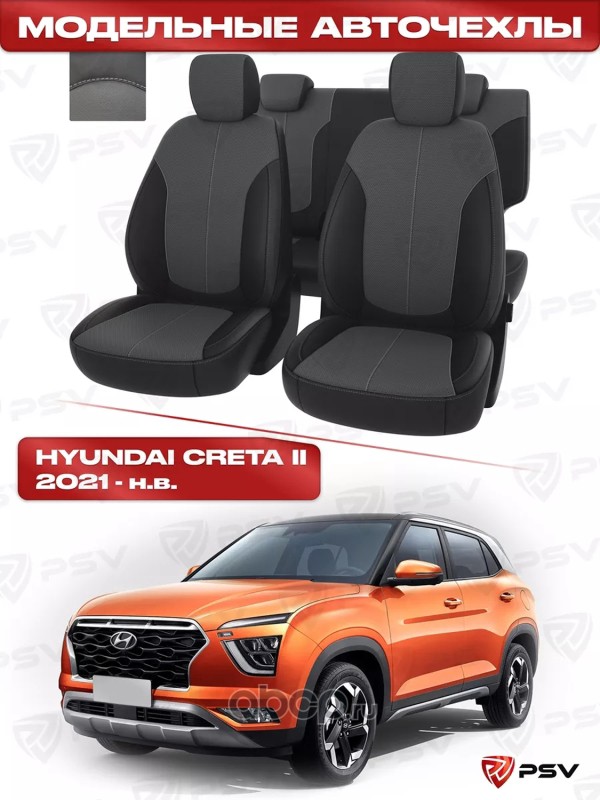 Чехлы в машину PSV для Hyundai Creta II 2021-> черно-серая экокожа "Оригинал