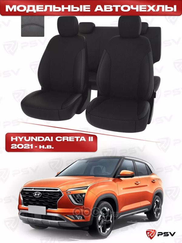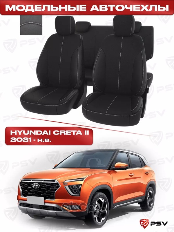 Чехлы в машину PSV для Hyundai Creta II 2021-> черный/отстрочка белая, экокожа "Оригинал