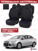 Чехлы Ford Focus III 2011-2019 г. - (Trend) РОМБ /отстрочка черная, черная перфорированная экокожа ""Статус