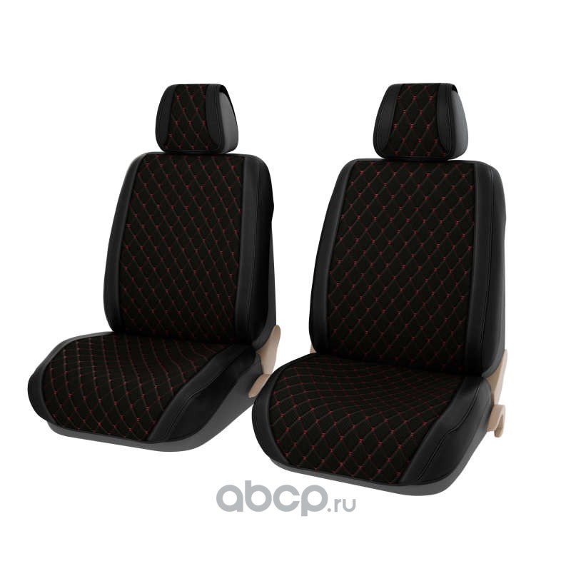 Накидки в машину универсальные 2D PSV Kosmos 2 FRONT (Черный/Отстрочка красная), на передние сиденья, с закрытыми боковинами
