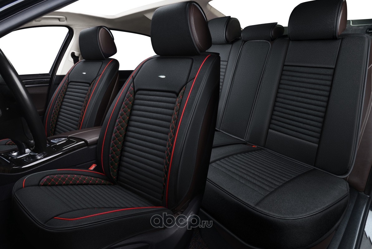 Накидки в машину универсальные 2D PSV Soft (Черный/Кант Красный), комплект на весь салон, с закрытыми боками, экокожа вельвет