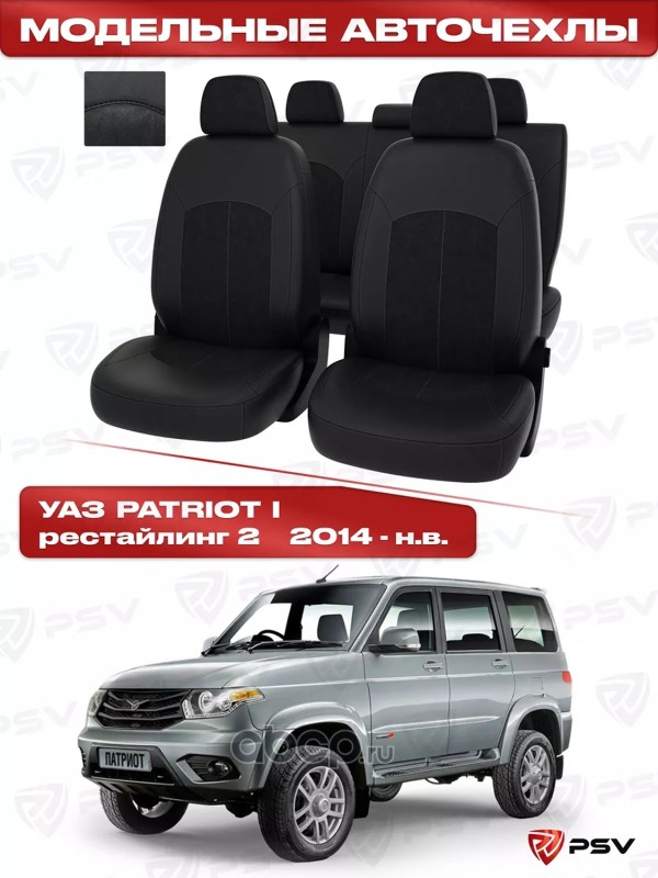 | PSV | 130267 | Чехлы UAZ Patriot 2014-> (Classic) черная экокожа + черная алькантара ""Оригинал | ||