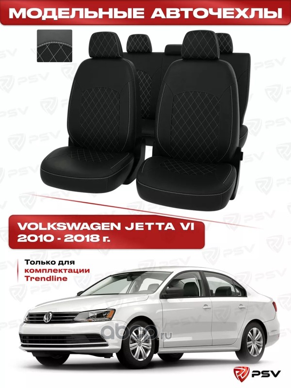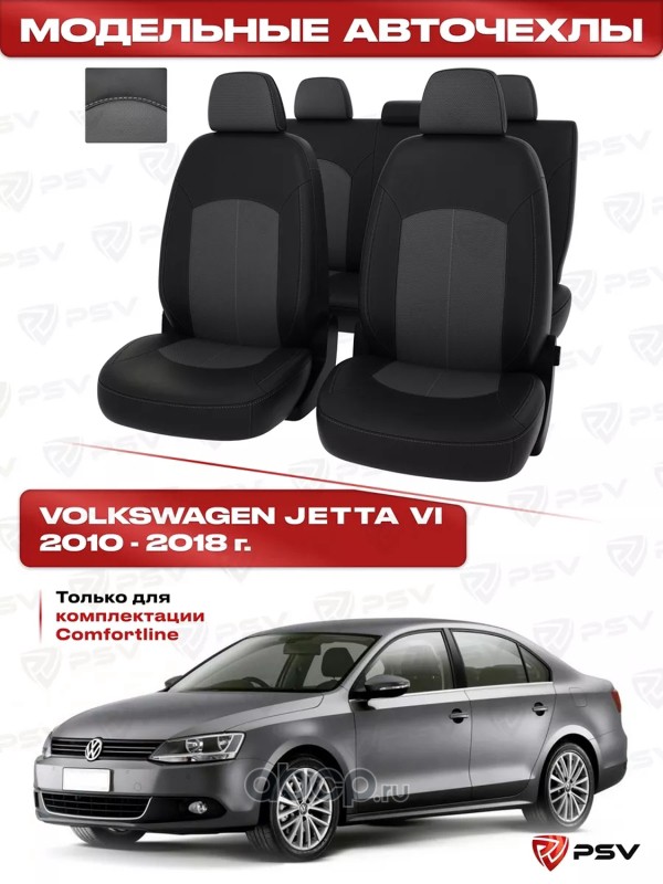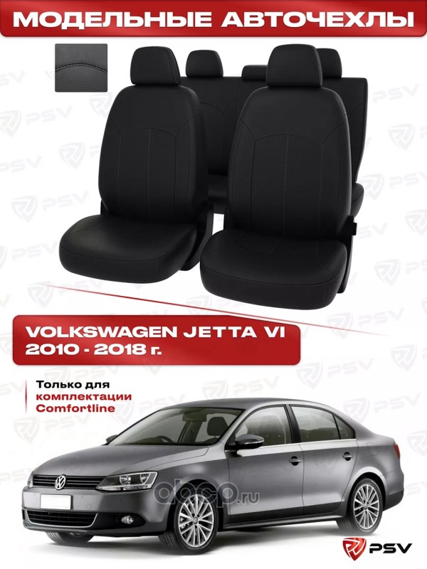 Чехлы VW Jetta VI 2010-2018 г. - (Comfortline) черный/отстрочка черная, экокожа ""Оригинал