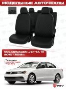 Чехлы VW Jetta VI 2010-2018 г. - (Comfortline) РОМБ/отстрочка черная, черная экокожа ""Оригинал