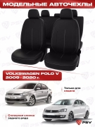 Чехлы VW Polo V 2009-2020 г. - Sd, сплошная спинка, черный/отстрочка белая, экокожа ""Оригинал