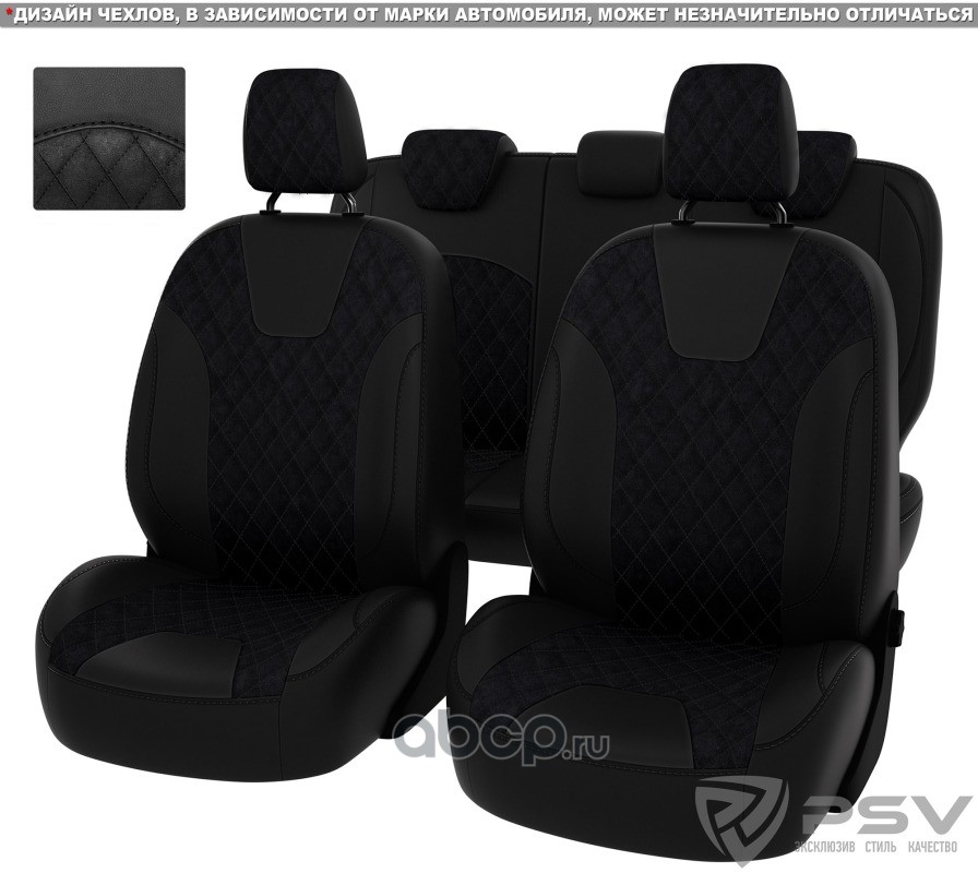 Чехлы Hyundai Solaris I 2010-2017 г. - Hb РОМБ/отстрочка черная, черная экокожа + черная алькантара ""Оригинал