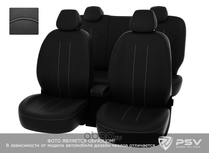 Чехлы Honda Pilot II 2008-2015 г. - 5 мест, черный/отстрочка белая, экокожа ""Оригинал