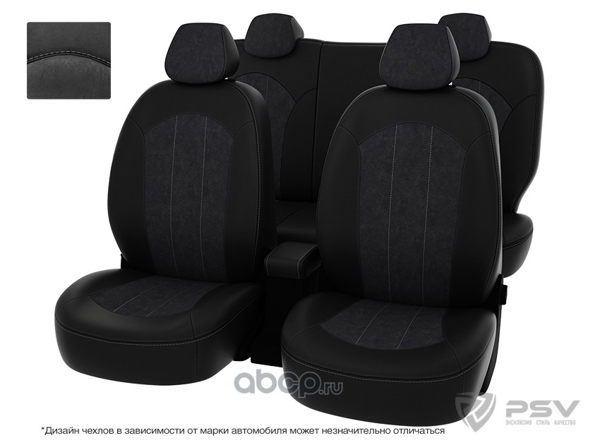 Чехлы Hyundai Santa Fe II 2005-2012 г. - черная экокожа + черная алькантара ""Оригинал