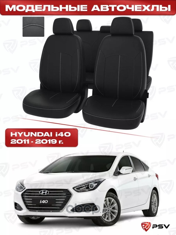 Чехлы Hyundai i40 2011-2019 г. - черный/отстрочка белая, экокожа ""Оригинал