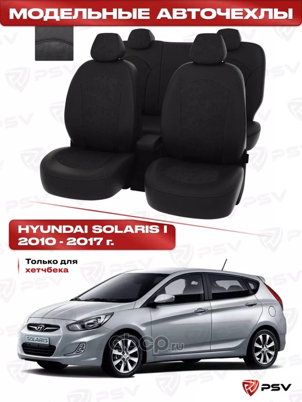 Чехлы Hyundai Solaris I 2010-2017 г. - Hb черная экокожа + черная алькантара ""Оригинал