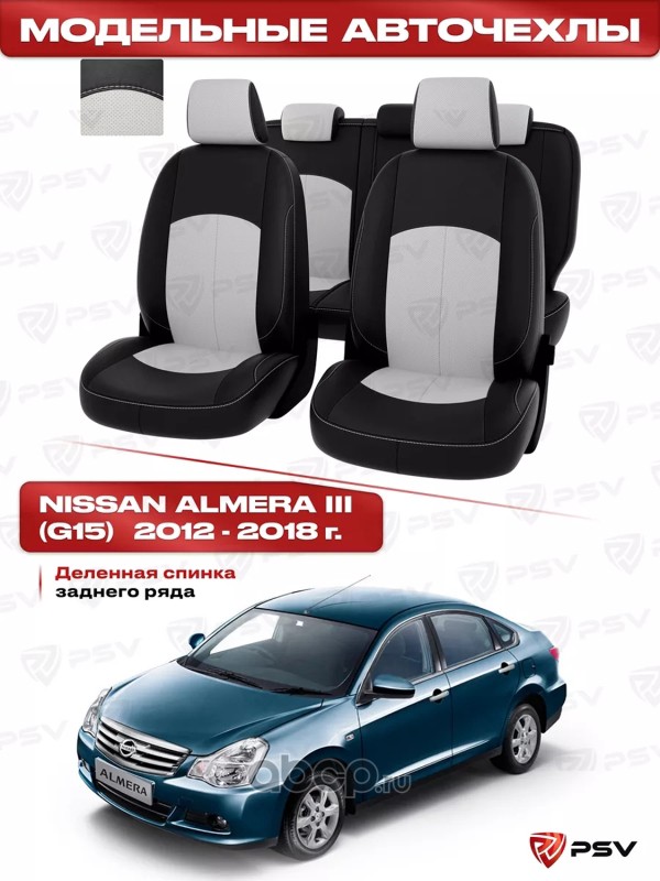 | PSV | 123597 | Чехлы Nissan Almera III 2012-2018 г. - деленная спинка, черно-белая экокожа ""Оригинал | ||