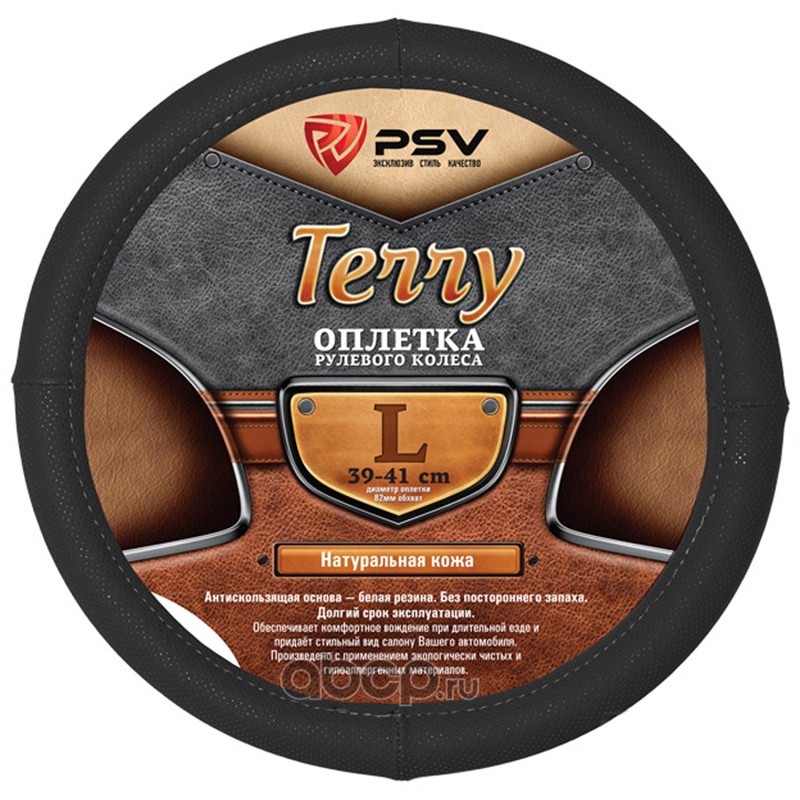 | PSV | 116961 | Чехол на руль оплетка натуральная кожа TERRY черный, размер L 39-41 см | ||