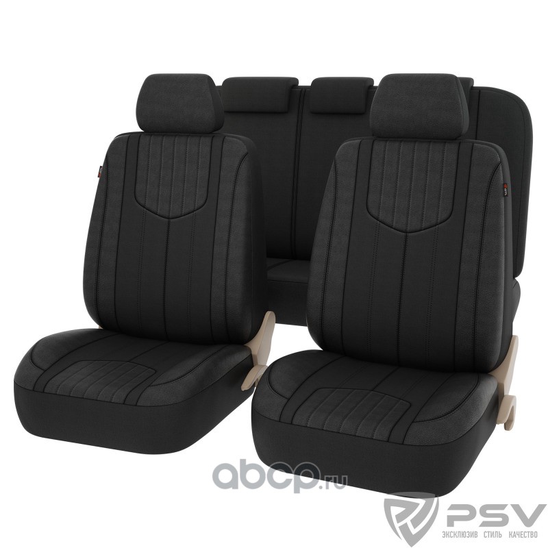 Накидки в машину универсальные 2D PSV Kosmos (Черный/Отстрочка черная), комплект на весь салон, с закрытыми боковинами