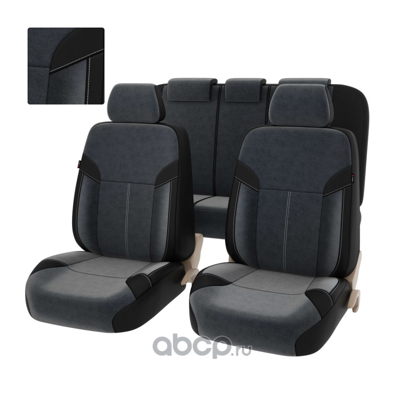 Чехлы в машину на сиденья универсальные весь салон PSV Amulet Next (Черный-Серый), экокожа + велюр