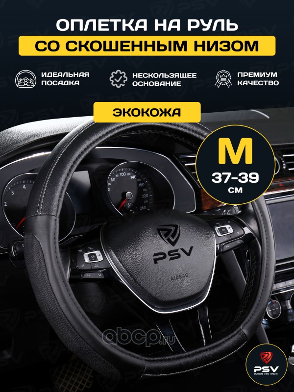 Чехол на руль оплетка со скошенным низом D форма RESPEKT CORNER черный, размер M 37-39 см