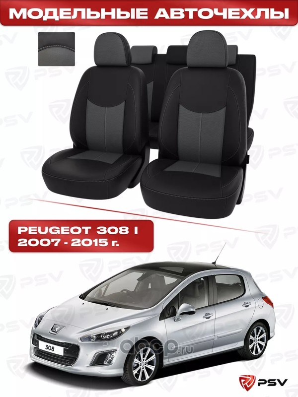 Чехлы Peugeot 308 I 2007-2015 г. - Hb черно-серая экокожа ""Оригинал