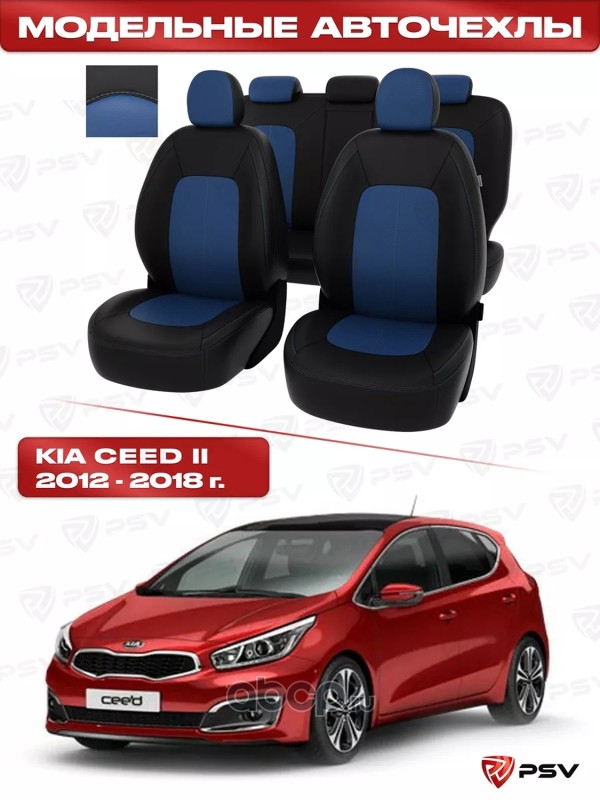 Чехлы в машину PSV для Kia Ceed II 2012-2018 г. - черно-синяя экокожа "Оригинал