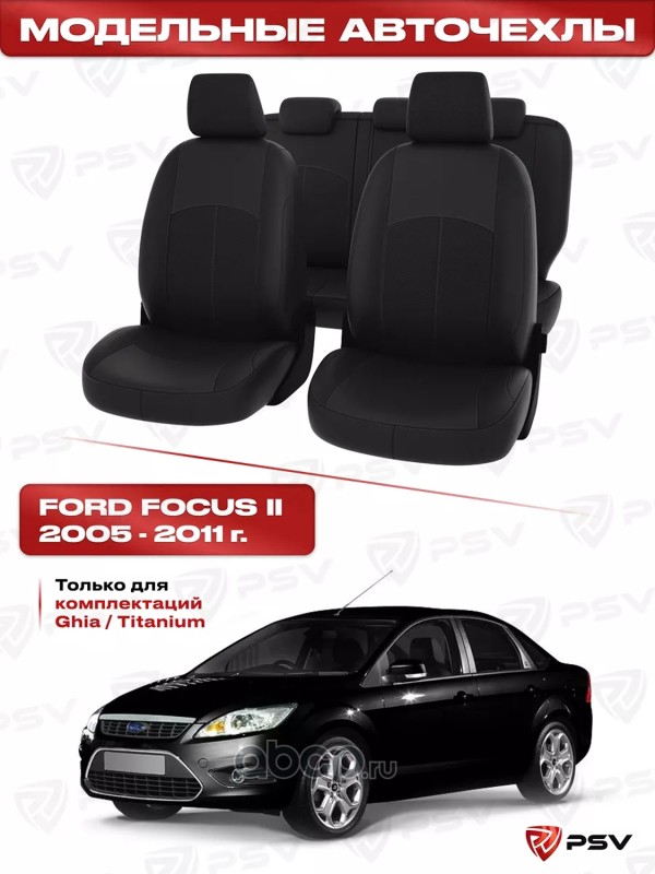 Чехлы в машину PSV для Ford Focus/Форд Фокус II 2005-2011 г. - (Ghia, Titanium) черный/отстрочка черная, экокожа "Оригинал