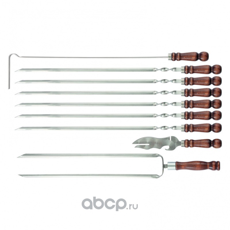 Набор шампуров угловых, 650 мм, с цельной деревянной рукояткой, в чехле, 6 шт, Camping Palisad