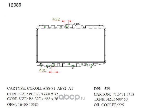 Радиатор охлаждения, Toyota Corolla, Corolla Levin, Sprinter, Sprinter Trueno, Sprinter Carib #E9#