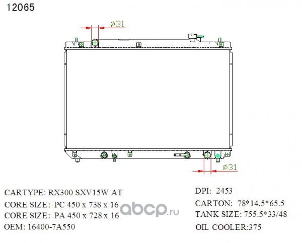 Радиатор охлаждения, Toyota Avensis, Corolla USA ZZT25#, #ZE12# 1ZZ-FE, 3ZZ-FE, 4ZZ-FE