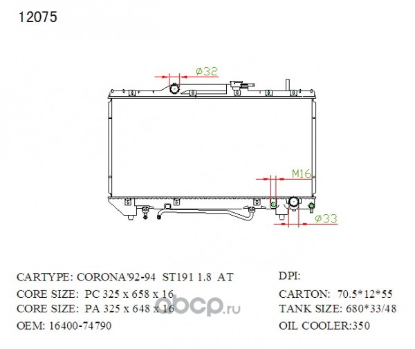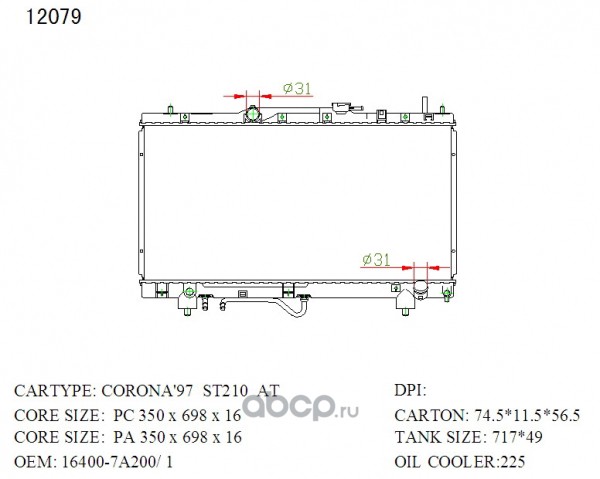 Радиатор охлаждения, Toyota Caldina, Carina, Corona Premio ST21# 3S-FE, 3S-FSE, 3S-GE