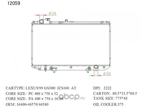 Радиатор охлаждения, Toyota Aristo, Crown, Crown Majesta, Lexus GS300 JZS16#, JZS17# 1JZ-GE, 2JZ-GE