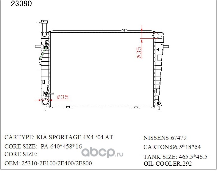 Радиатор охлаждения, Kia Sportage 2.0 2004-2008