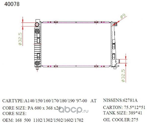 Радиатор охлаждения, Mercedes-Benz A-Class W168 1997-2004