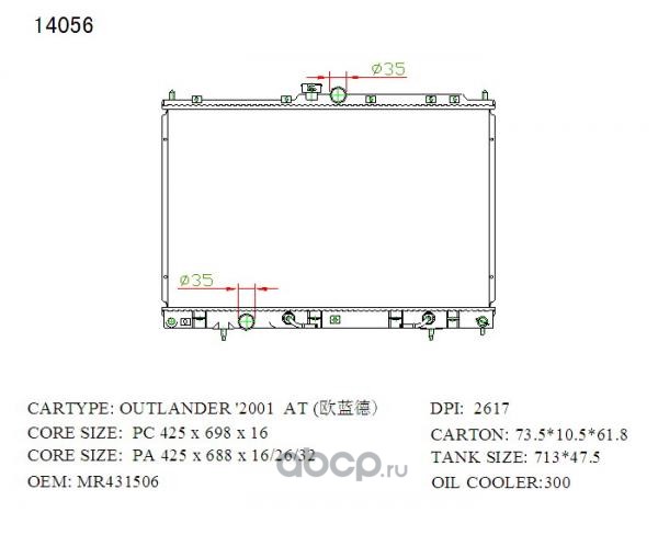 Радиатор охлаждения, Mitsubishi Airtrek, Outlander CU#W, CW#W 4G63, 4G63T, 4G93, 4G94