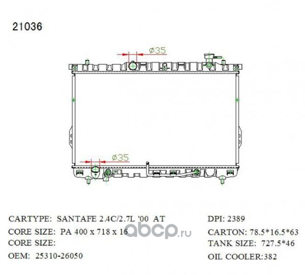Радиатор охлаждения, Hyundai Sante Fe Classic 2.0D 2000-2006