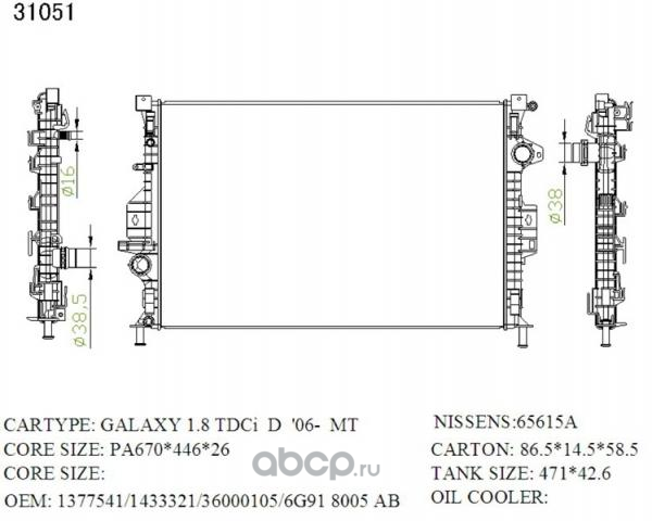 Радиатор охлаждения, Ford Mondeo 1.8, 2.0 2001-2006