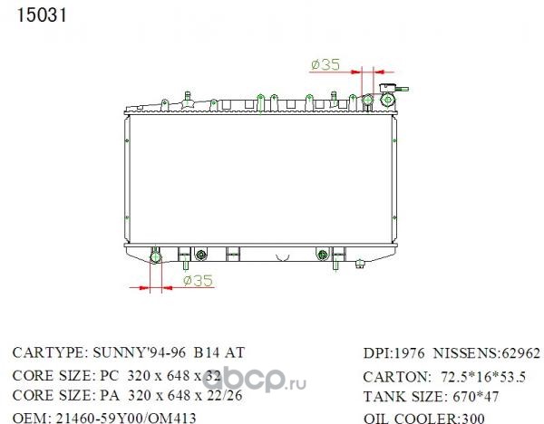 Радиатор охлаждения, Nissan Bassara, Liberty, Serena, R'nessa #U30, #M12, #C24, #N30 KA24DE, SR2