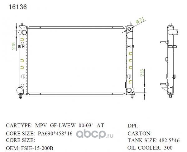 Радиатор охлаждения, Mazda MPV LW#W FF, FS-DE, L3, L3-DE 1999-2003