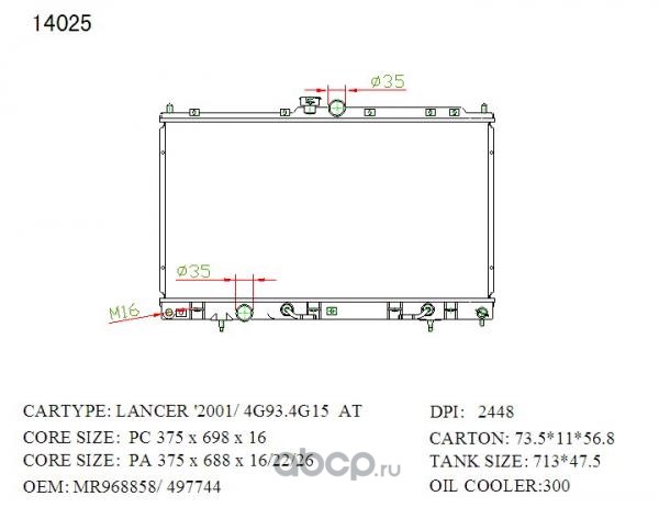 Радиатор охлаждения, Mitsubishi Lancer, Mirage CB#A, CA#A 4G13, 4G15, 4G91, 4G92, 6A10, 6A11
