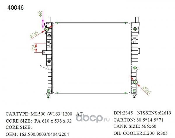 Радиатор охлаждения, Mercedes-Benz ML-Class W163 ML320